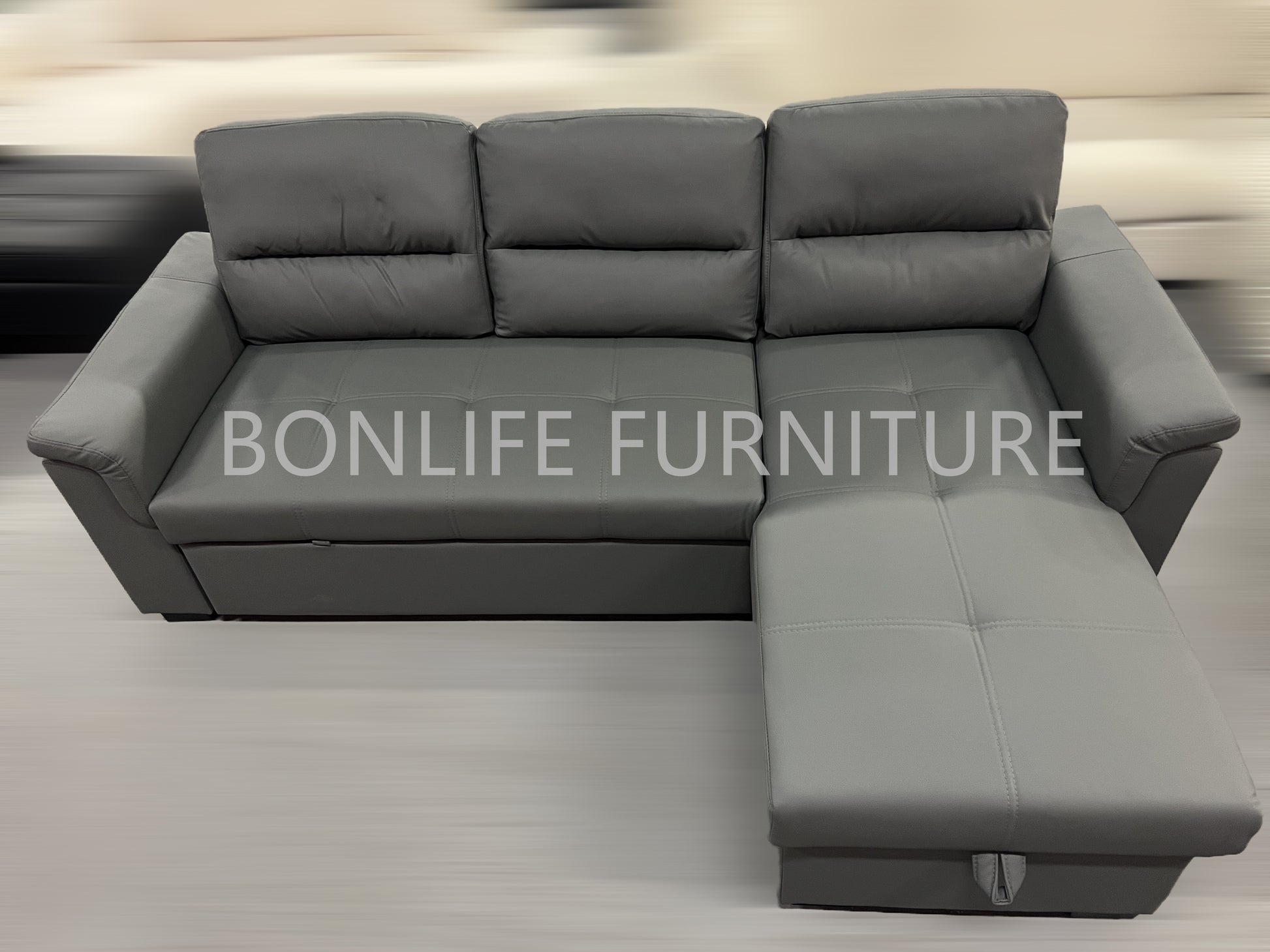 Grey Pull-Out Sectional Sofa Bed with Storage & Reversible Chaise-T1217