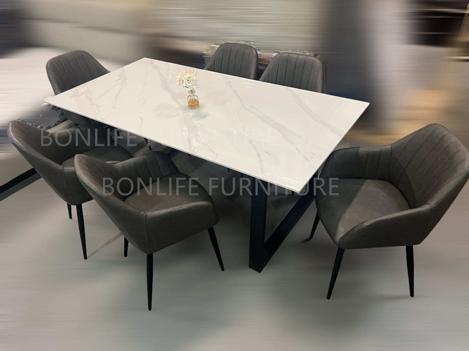 Modern 7-Piece White Sintered Stone Table Set-I1550(1416C)
